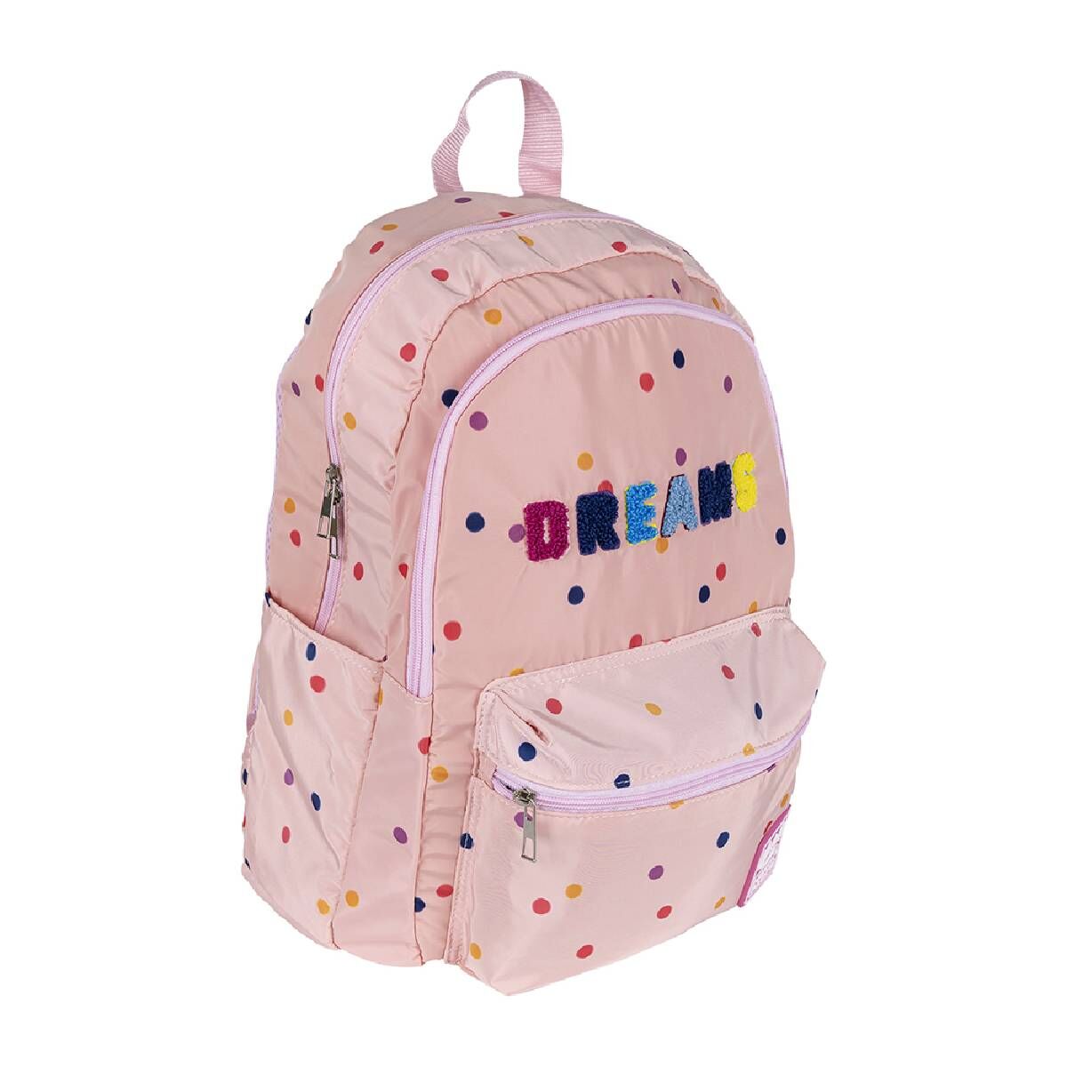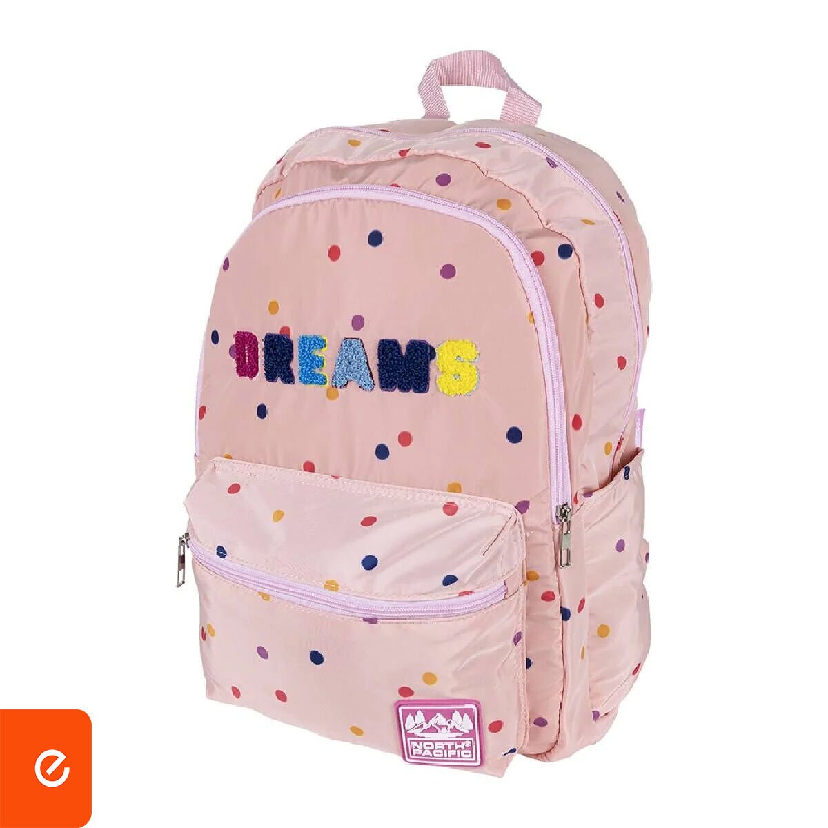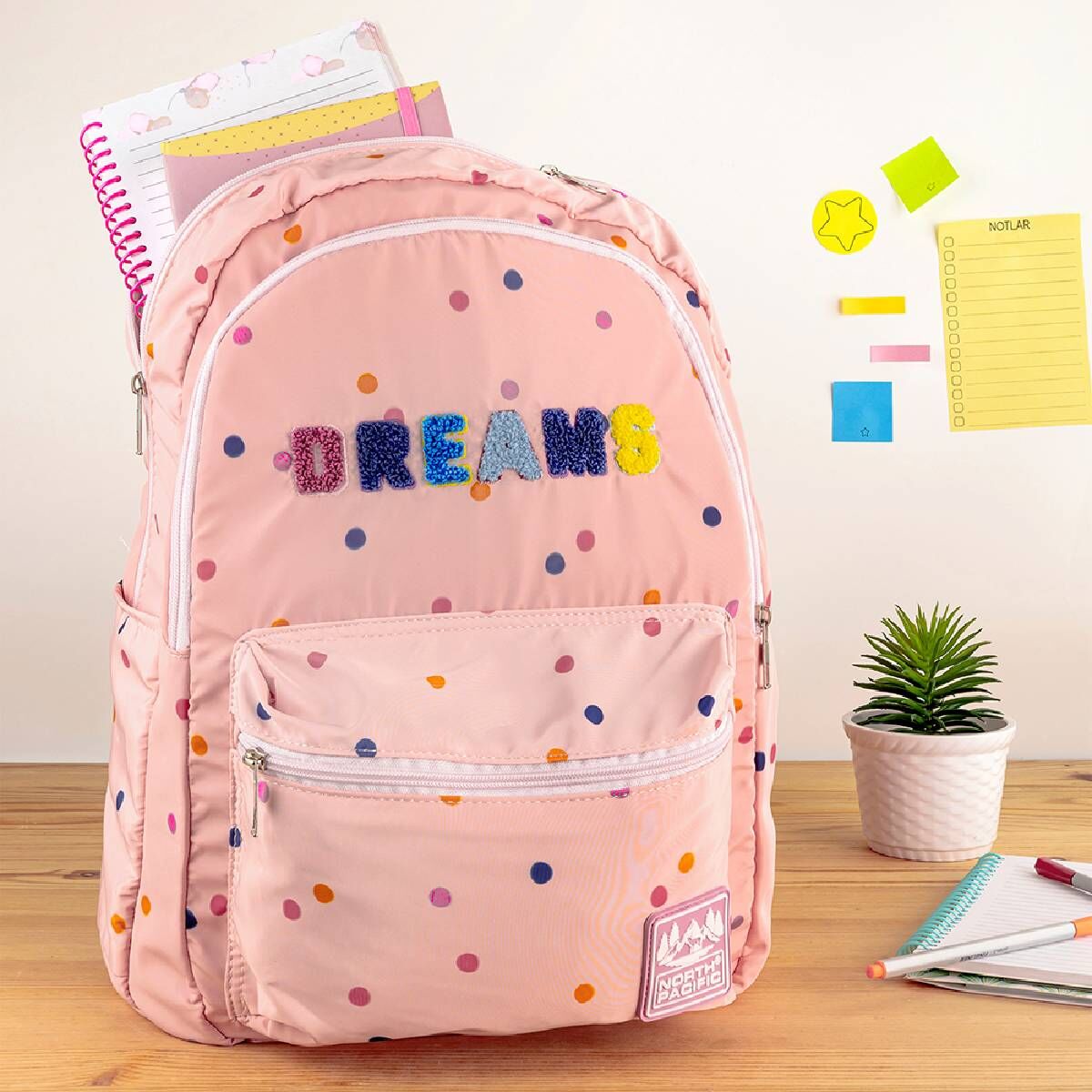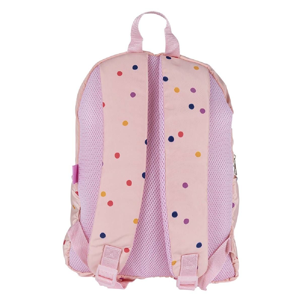 30 cm x 48 cm x 10 cm ölçülerindeki puantiyeli sırt çantası, canlı ve neşeli deseniyle tarzınızı yansıtırken ergonomik yapısıyla da konforlu bir kullanım sunar.
