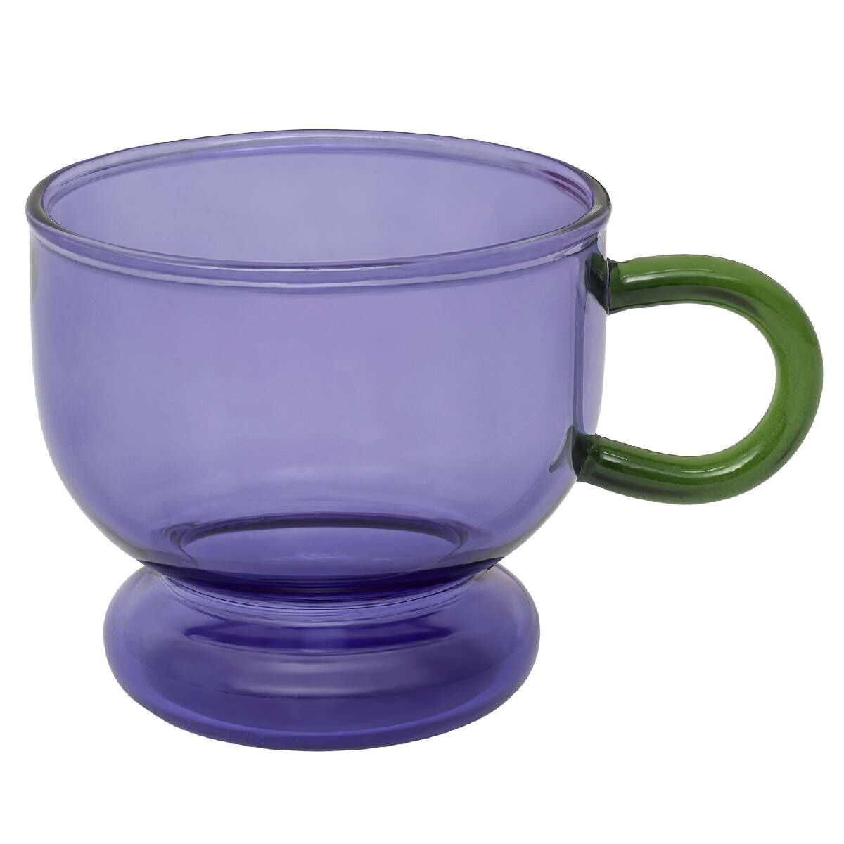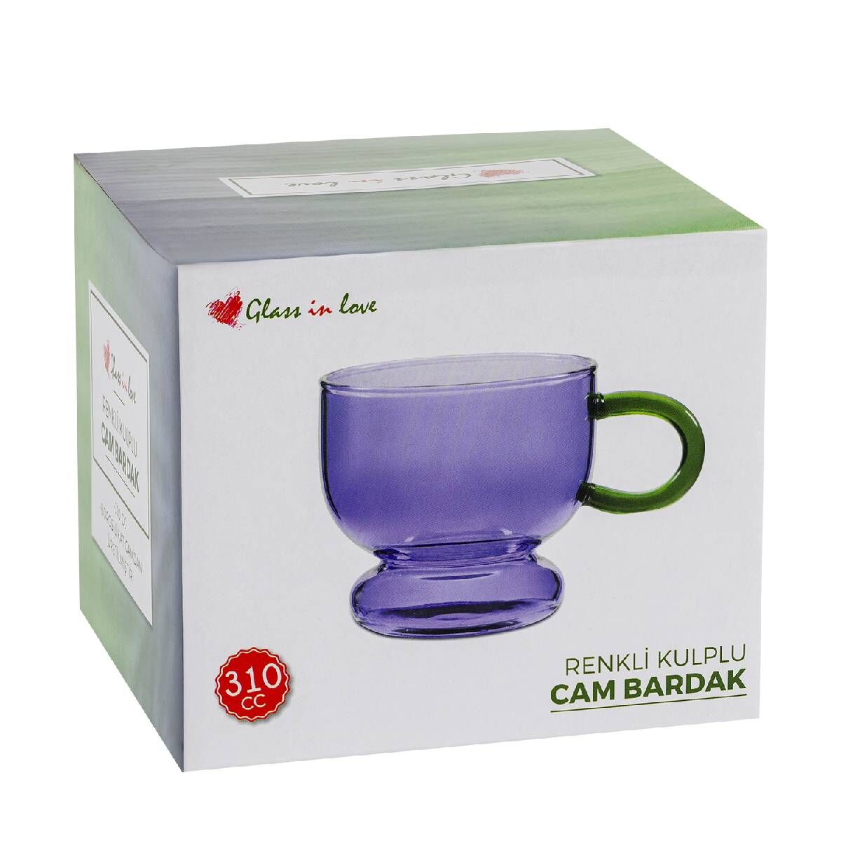 Renkli Kulplu Cam Kupa Mor