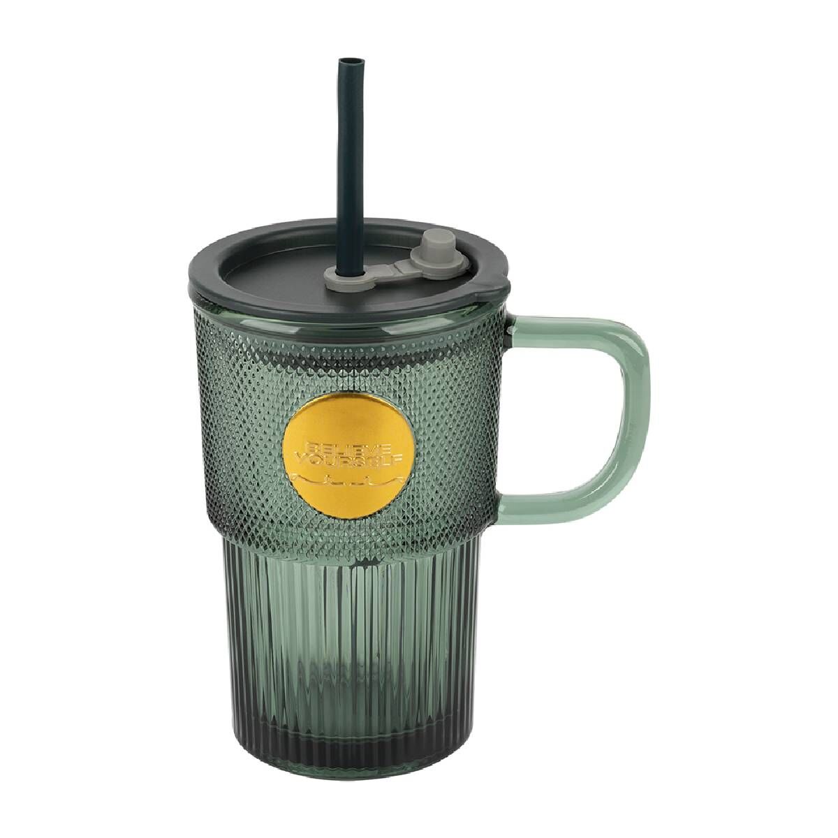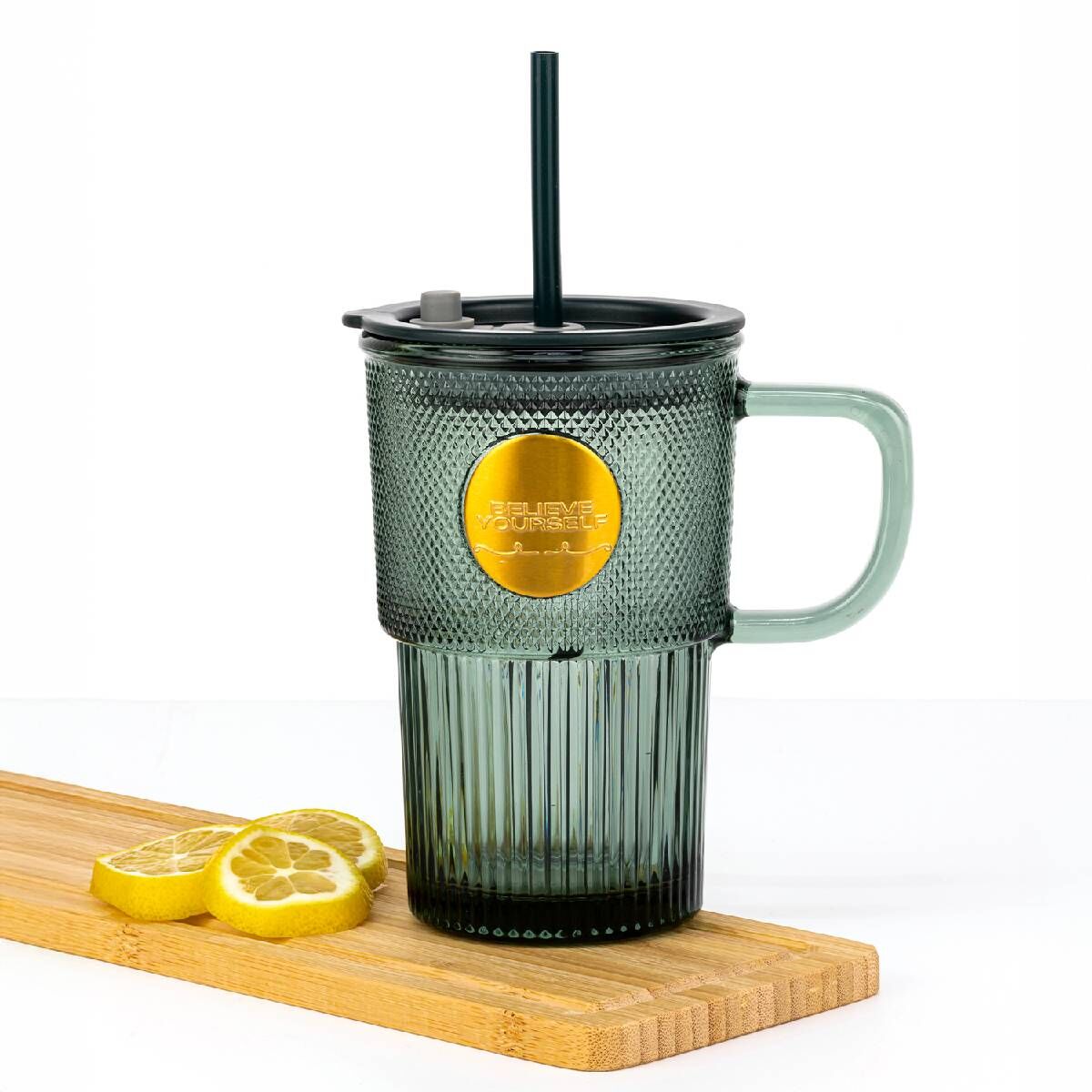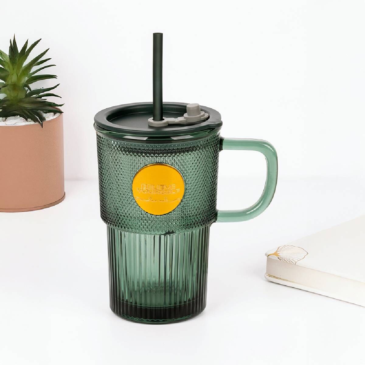 400 ml hacme sahip renkli pipetli kapaklı cam kupa, yaz aylarının vazgeçilmezi olacak!