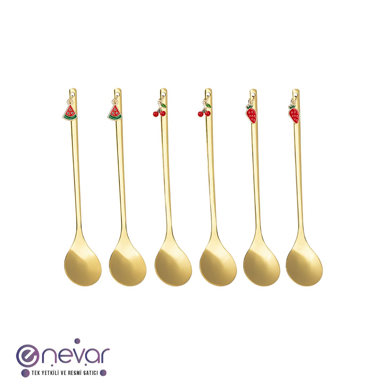 Sevimli Şık 6'lı Gold Paslanmaz Çelik Tatlı Kaşığı Seti – 15 Cm