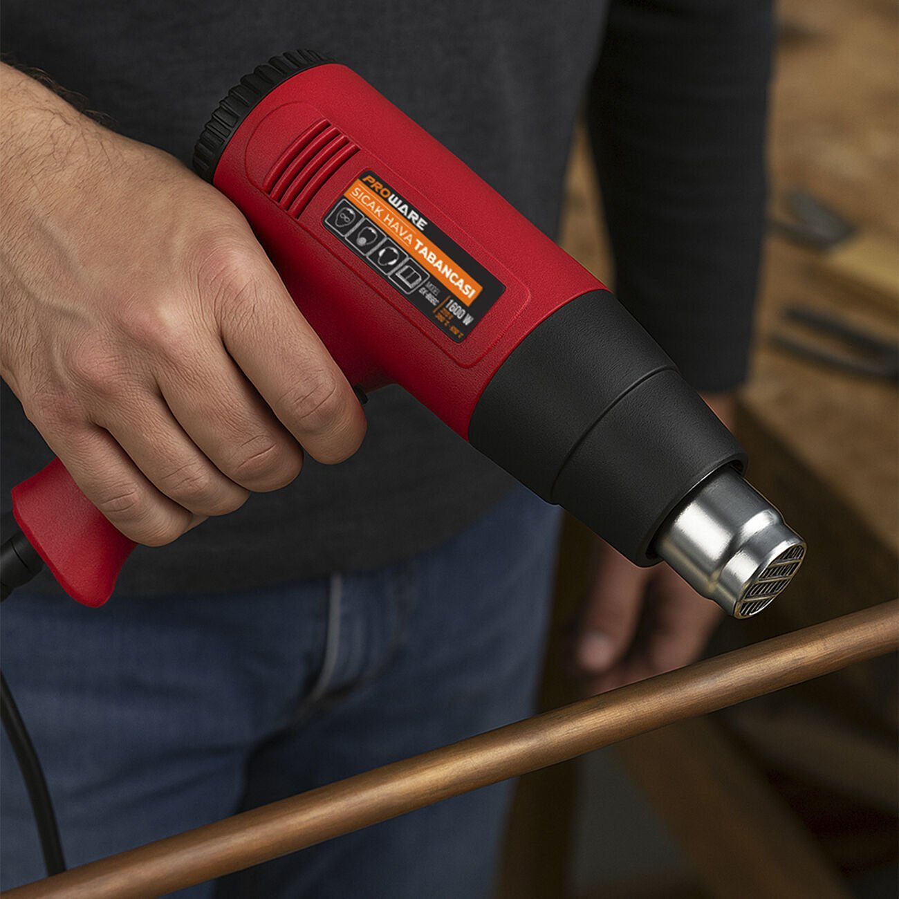 - Proware Sıcak Hava Tabancası, boya sökme, plastik şekillendirme, kablo büzme, etiket çıkarma, ısı ile şekillendirme ve daha birçok uygulamada pratik ve güvenli kullanım sunar.