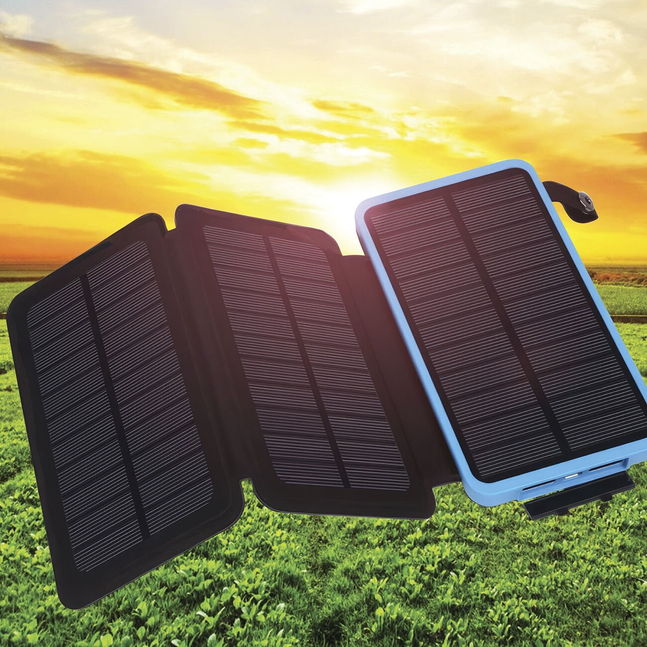 - Proware Solar Panelli Powerbank, 20.000 mAh yüksek kapasiteli bataryası ve entegre katlanabilir güneş panelleri ile kamp, seyahat, doğa yürüyüşleri ve elektrik erişiminin sınırlı olduğu tüm alanlarda güvenilir enerji çözümü sunar.