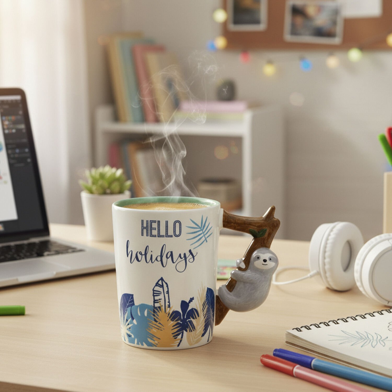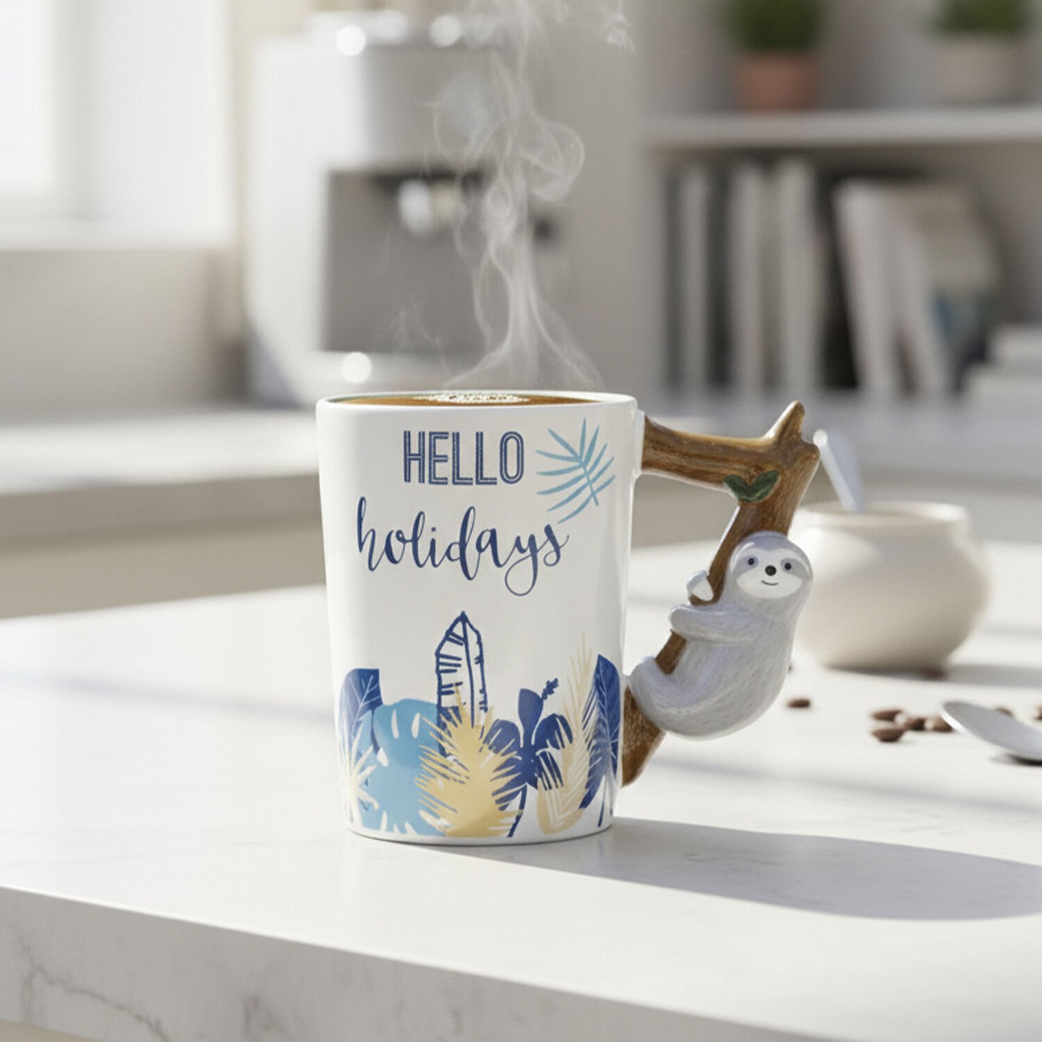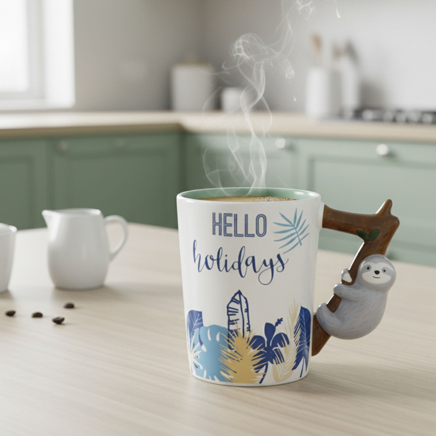 Tembel Hayvan Figürlü Seramik Kupa - 360 ML ile kahve ve çay keyfinizi sevimli bir dokunuşla tamamlayın. Dayanıklı seramik malzeme ve eğlenceli tasarım bir arada!