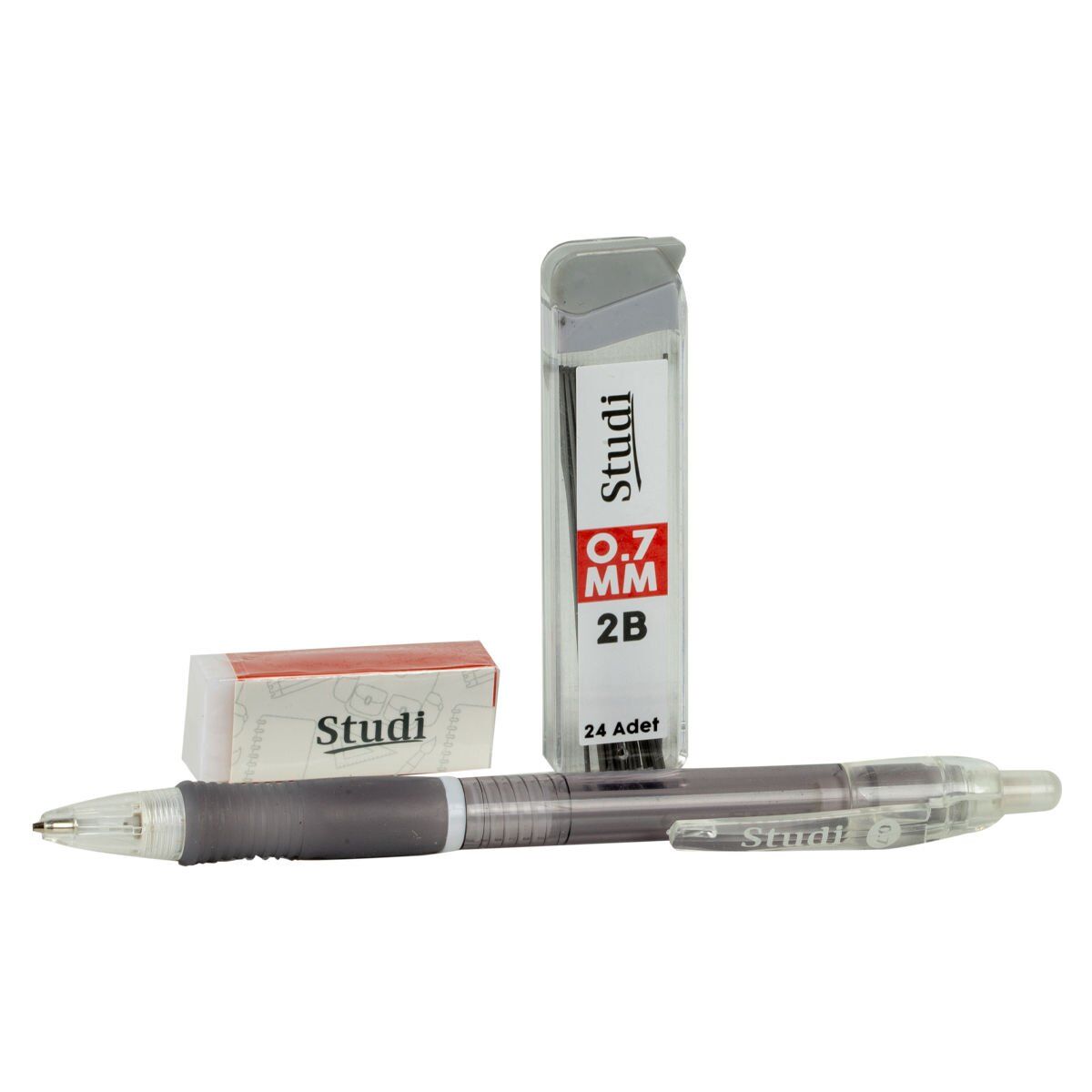 Bu uçlu kalem seti, 1 adet 0.7 mm uçlu kalem, 1 adet 0.7 mm 2B uç ve 1 adet PVC silgi içerir. Uçlu kalem, ergonomik tasarımı ve rahat tutuşu ile yazı yazmanın daha keyifli olmasını sağlar. 0.7 mm uç, kalemle yazmanın daha yumuşak ve akıcı olmasını sağlar. 2B uç, koyu ve belirgin bir yazı yazmanızı sağlar. PVC silgi, yazım hatalarınızı kolayca düzeltmenize yardımcı olur.